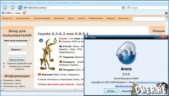Arora-простой свободный кроссплатформенный браузер, написанный на QT4/QTWebKit. Обладает базовым функционалом - история, закладки, поддержка расширений (включая flash при наличии QT 4.5), быстро развивается.
