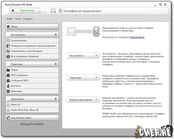 Скачать программу Sony Ericsson PC Suite 6.009.00 Rus (16,72 МБ):