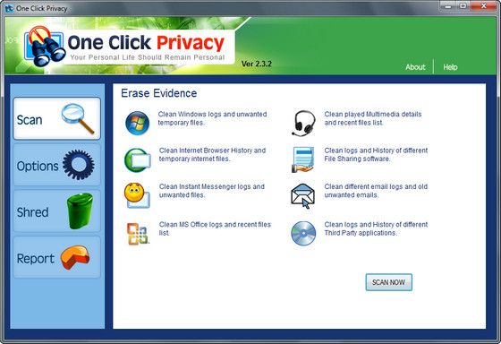Маленькая, компактная программа One Click Privacy автоматически или всего одним щелчком, подтирает историю и следы интернет - активности от злонамеренного или любопытного глаза. Убирает историю браузеров, куки, вводимые пароли, ID's, банковские операции и информацию о кредитных картах. Убирает следы работ пиринговых клиентов, включая Bit Torrent Client, Kazaa, LimeWire, Morpheus и других. Стирает следы переписки и голосовые протоколы и т д.