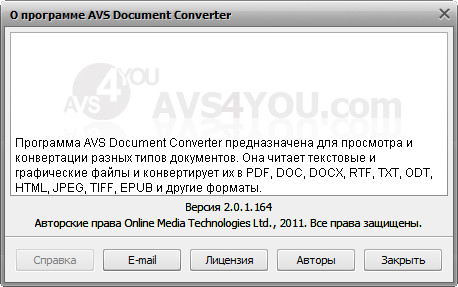 Скачать программу Portable AVS Document Converter 2.0.1.164 (41 МБ):