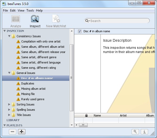 Программа определяет массу разнообразных ошибок. Долго перечислять все, но приведу несколько примеров. Разные написания названий: River Side, the Riverside и Riverside – программа предложит привести к одной форме. Разные даты треков в рамках одного альбома – программа предложит пометить этот диск сборником или поставить одну дату для альбома. Всякие Disc 1, Disc 2 и т.п. в названиях альбомов программа предложит убрать, а номер диска вписать в соответствующий тег.