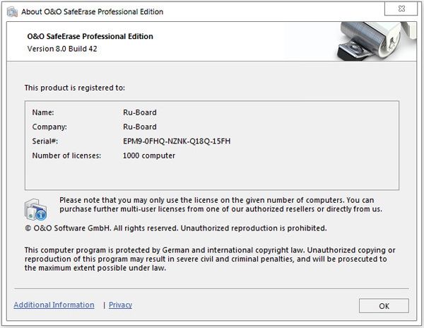 Скачать программу O&O SafeErase Professional 8.0 Build 42 (25,41 МБ):