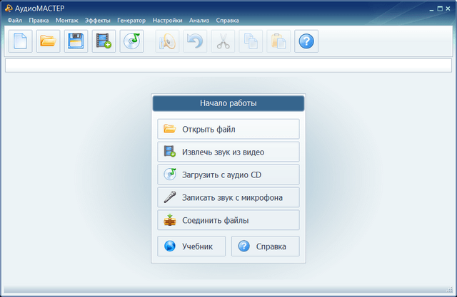 АудиоМАСТЕР – это программа для работы с аудио файлами самых популярных форматов. Редактируйте музыку, записывайте звук с микрофона, создавайте рингтоны для мобильных!