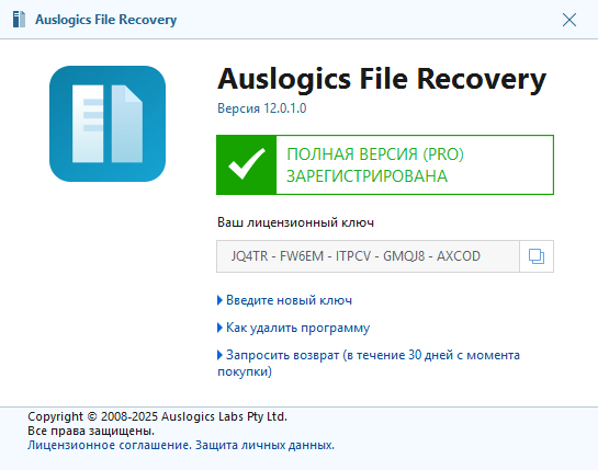 Скачать программу Auslogics File Recovery 12.1.1.0 (18,08 МБ):