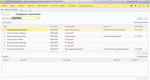 • Учет движения кадров. Плановые начисления