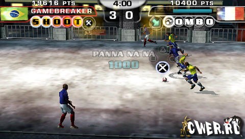 Спортивный беспредел на улицах города, и вы - в самом центре событий! В игре заместо травяного поля асфальт и стены, через которые можно отдавать пас. Это футбол в котором нет судьи и действует одно правило, кто забил больше всего голов противнику тот, и победил. Большое разнообразие финтов помогут Вам постоянно создать опасные моменты. В игре собраны лучшие игроки сборных команд и просто знаменитые игроки!