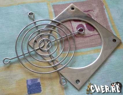 Вентиляторная решетка типовая, от блока питания. Рамку я сделал сам из нержавейки.