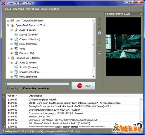 VSO ConvertXtoDVD позволяет Вам преобразовывать и затем прожигать Ваши видео файлы, которые будут совместимы с любым проигрывателем DVD. ConvertXtoDVD - поддерживает множество файлов, XVid, MPEG 1/2/4, VOB, MOV, и теперь WMV 3, форматы HD и т.д...