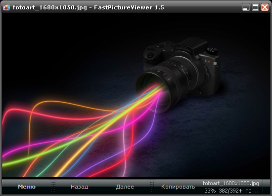 FastPictureViewer - простой в использовании просмотровщик графических файлов. Основным достоинством программы является очень быстрая работа с файлами большого размера, которое заключается в том, что используется не классические методы рендеринга изображений, а считывает их с помощью графического чипа видеокарты.