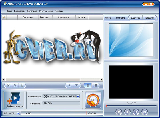 Xilisoft DVD Creator - программа для создания и записи (прожига) DVD с простым и удобным интерфейсом. Основные возможности: создание DVD с полноценными меню и субтитрами из AVI, MPEG, WMV, DV, DivX, Xvid, VOB, 3GP, 3G2, MP4 и других видеофайлов.