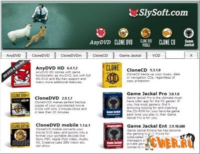 Elby CloneDVD v2.9.1.9, Elby Virtual CloneDrive v5.4.0.6, SlySoft AnyDVD v6.4.5.9, SlySoft CloneCD v5.3.1.3, SlySoft CloneDVD mobile v1.2.0.1, Slysoft Game Jackal Pro v3.1.1.2,