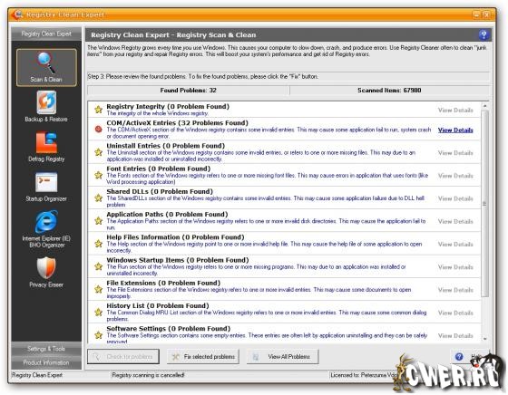 Registry Clean Expert - неплохая программа для чистки реестра, в результате чего повышается быстродействие компьютера. Registry Clean Expert сканирует реестр Windows и ищет устаревшие или ошибочные записи, которые потом исправляет. Кроме этого, программа позволяет создавать резервные копии системного реестра, а также настраивать программы, запускаемые при загрузке операционной системы.