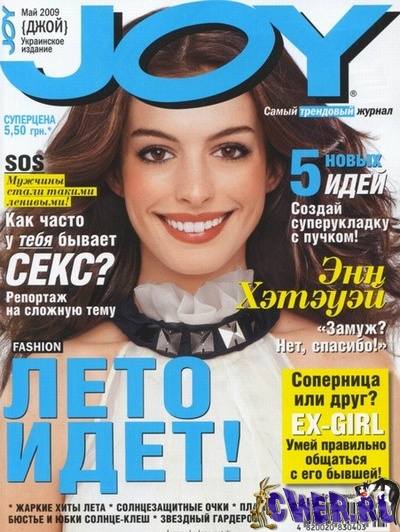 Развлекательный глянцевый женский журнал, создающий отличное настроение! Читательницы Joy — жизнерадостные модницы, которые относятся к жизни легко и весело, путешествуют, знают последние направления в моде и красоте, они сексуальны и энергичны. Основные темы журнала: звезды, красота, мода, мужчины, секс и флирт.