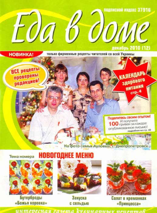 Каждой хозяйке хочется радовать своих близких вкусными, полезными и оригинально оформленными блюдами. Но проблема у всех одна: то времени не хватает, то нет возможности приобрести необходимые продукты. С изданием «Еда в доме» вы быстро решите все эти проблемы, потому что рецепты, опубликованные на страницах журнала, просты, доступны и легки в приготовлении. В то же время они способны украсить любое застолье не только в будни, но и в праздники.