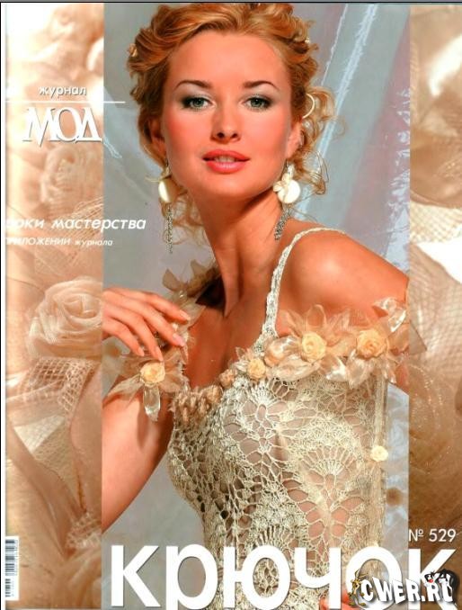 Журнал мод - это журнал по вязанию спицами и крючком. В этом номере: топ-корсет, воротник, кружевные декоры, блузки, жилеты, джемпер, болеро, платья, сумка, мантилька, топ, жакет, юбки, жилет-болеро, пальто, платье и нарукавники, береты, блуза, скатерть, шарф, пуловер.